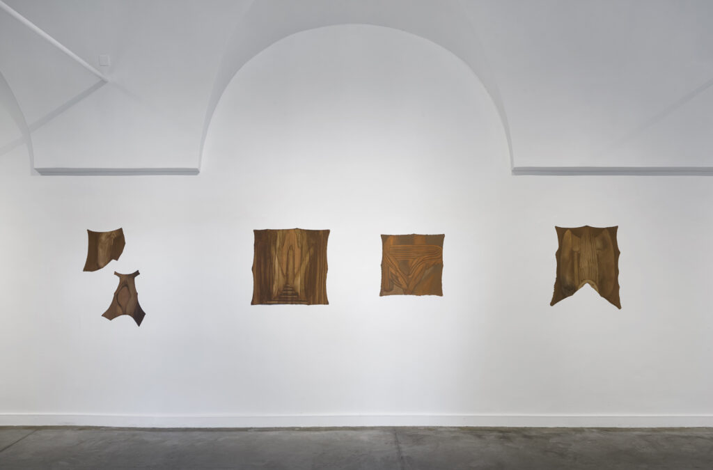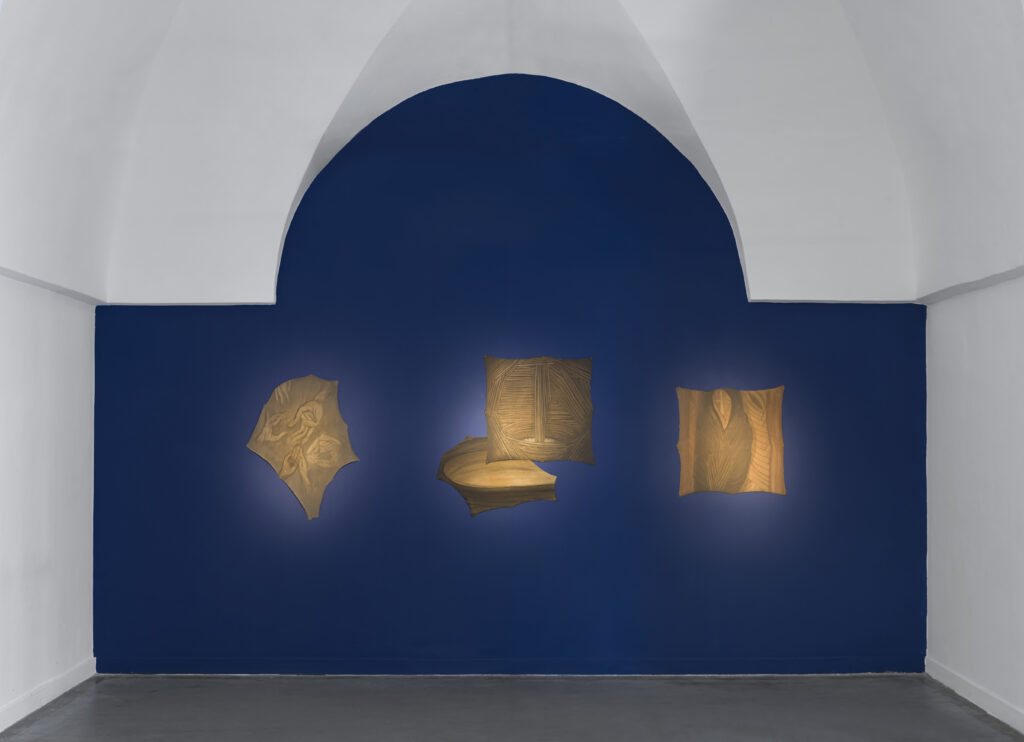 her previous work, the artist works with organic elements, using artisanal techniques