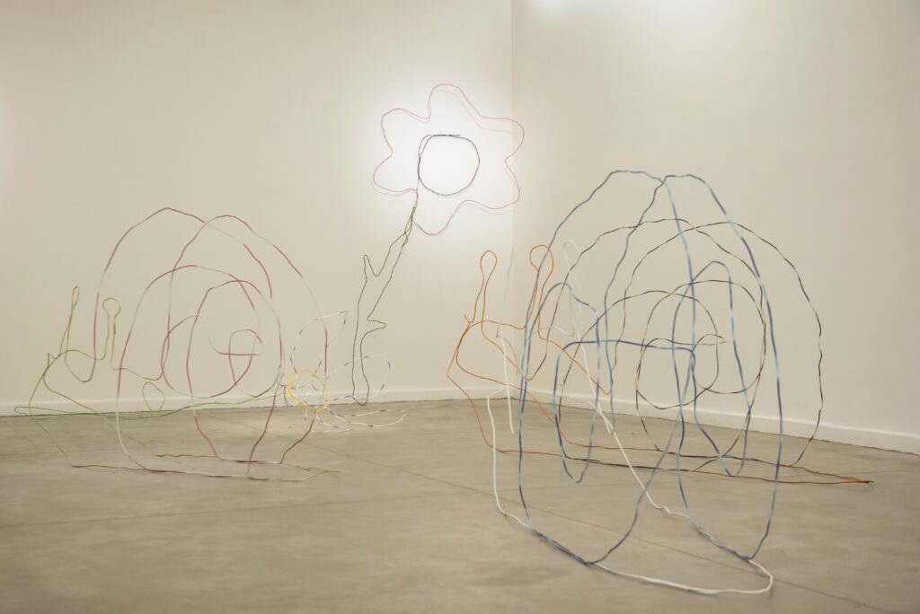 In Vision Impossible, Mariano Ullua (Mar del Plata, 1976) presents his work with wrought iron, a malleable industrial material that has on this occasion inspired him to explore new paths. Working at the intersection between drawing and sculpture, Ullua has developed a practice in which the line frees itself from the page to occupy three-dimensional space. Where in his previous works pig iron acted as an expansion of a drawing in black, now, with the incorporation of colour, the line is continued with paint. The pieces begin to vibrate with sensory tension. Like delirious visions, we see birds, letters, and everyday artefacts pass by in a wholly unreal choreography.