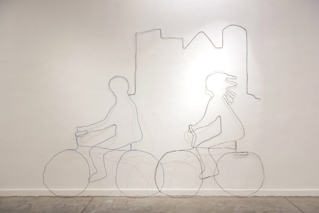 The lines of iron make minimal statements: ‘Here is a bird’, but a few centimetres on the line is interrupted and there is nothing there. On this precipice, the artist acts as an unstable acrobat supporting the forms upon small bases that can barely keep them upright. Whether it’s a duck or tap with flowing water, the sculptures seem to breathe in the gap between ethereality and collapse. It is the eye of the viewer that prevents the fall, completing the figures with its gaze and echoing the trembling of the forms. Ullua does with iron what a poet does with language.